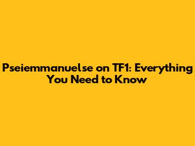 Pseiemmanuelse On TF1: Everything You Need To Know