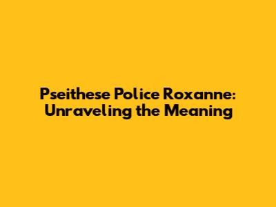 Pseithese Police Roxanne: Unraveling The Meaning