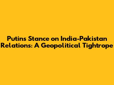 Putin's Stance On India-Pakistan Relations
