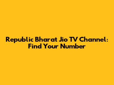 Republic Bharat Jio TV Channel: Find Your Number