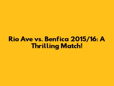 Rio Ave Vs. Benfica 2015/16: A Thrilling Match!