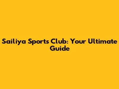Sailiya Sports Club: Your Ultimate Guide