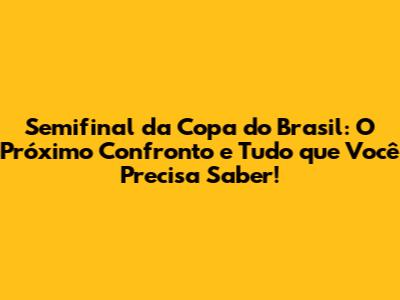 Semifinal Da Copa Do Brasil: Tudo Sobre O Próximo Jogo!