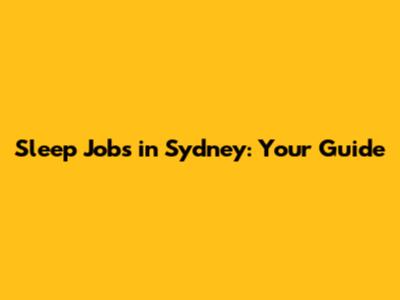 Sleep Jobs In Sydney: Your Guide