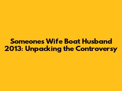 Given the provocative nature of the phrase "Someone's Wife Boat Husband 2013," there are several ways this could be interpreted, and each interpretation carries its own potential impact. Let's break them down, shall we?