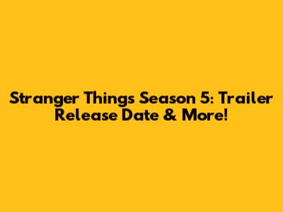 Stranger Things Season 5: Trailer Release Date & More!
