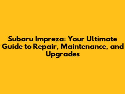 Hey guys! Welcome to the ultimate guide for all things Subaru Impreza. Whether you're a seasoned owner, considering buying one, or just curious about this awesome car, you've come to the right place. We're diving deep into everything you need to know, from routine maintenance and common repairs to cool upgrades and modifications. Get ready to become an Impreza expert! We will also be exploring the Subaru Impreza's rich history, its evolution through various generations, and what makes it such a beloved car for so many people. This comprehensive guide aims to provide you with all the information you need to keep your Impreza running smoothly, looking great, and performing at its best. So, buckle up, and let's get started!