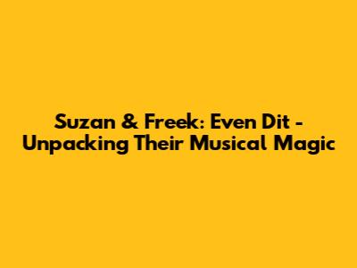 Hey music lovers! Ever found yourself completely captivated by a song? That's exactly how many of us feel about Suzan & Freek's music, especially their hit, "Even Dit." This article is all about diving deep into the world of this amazing Dutch duo, exploring the song itself, their journey, and why their music resonates so deeply with so many people. So, grab your headphones, get comfy, and let's get started!