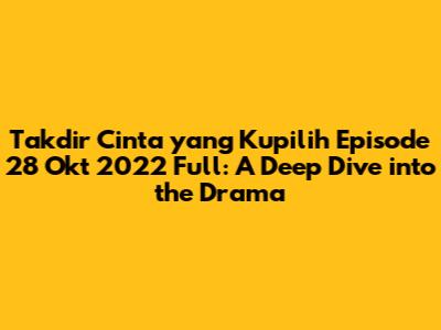 This detailed look at the "Takdir Cinta yang Kupilih" episode from October 28, 2022, should give you a solid understanding of the key plot points and character developments. Stay tuned for more updates and analyses of your favorite drama series!