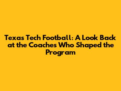 Texas Tech Football: Legendary Coaches And Their Impact