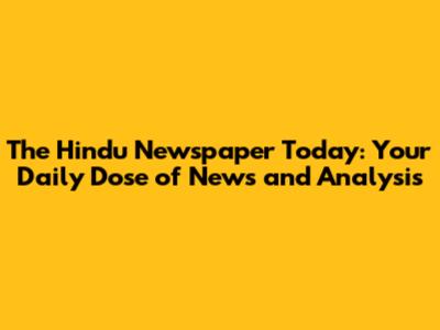 The Hindu Newspaper Today: English & Tamil Nadu Edition