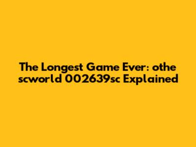 The Longest Game Ever: Othe Scworld 002639sc Explained