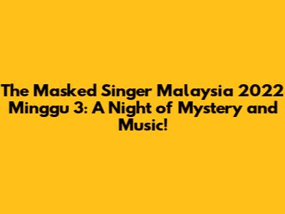 Alright, let's get down to the juicy details. Minggu 3 of The Masked Singer Malaysia 2022 was packed with incredible performances. The variety of musical styles, from pop to traditional melodies, was amazing. The singers brought their A-game, and it was tough to decide who should move on. The clues were as cryptic as ever, teasing the judges and viewers alike with hints about the masked celebrities' identities. Remember, each performance is a carefully constructed presentation, designed to entertain and confuse. The costumes were, as usual, spectacular. Some were more intricate than others, but each one added to the overall atmosphere of mystery and glamour. The set design, lighting, and stage effects enhanced each performance, creating a captivating viewing experience. The masked singers put on amazing shows. The selection of songs was outstanding. The judges had their work cut out for them, providing feedback, and also trying to crack the code of who was behind each mask. It is a competition, but it's also a celebration of music and talent. The energy was palpable, both in the studio and among the viewers at home. The anticipation was intense, with everyone eager to see who would be unmasked and who would advance to the next round. The performances were only part of the show. The true excitement comes from the unmasking. The anticipation builds throughout the show. The unveiling of each celebrity's identity is a major moment. It's the culmination of weeks of speculation. Each unmasking reveals more about the personalities and careers of the stars. It provides a unique opportunity for them to showcase their singing abilities. What makes the show so captivating is its ability to create a sense of community. The fans participate actively through social media, sharing their guesses and reactions in real-time. This interactive element adds to the show's appeal and makes it a shared experience. The show highlights the importance of keeping an open mind, as sometimes the most obvious guess is not always the correct one. The show also highlights the versatility of the stars who perform, as they navigate different genres and styles with ease.