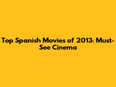 Top Spanish Movies Of 2013: Must-See Cinema