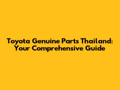 Toyota Genuine Parts In Thailand: Your Ultimate Guide