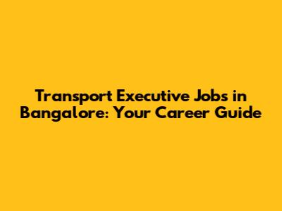 Transport Executive Jobs In Bangalore: Your Career Guide