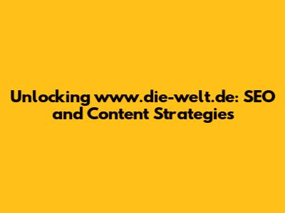 Unlocking Www.die-welt.de: SEO And Content Guide