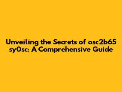 Unveiling The Secrets Of Osc2b65 Sy0sc: A Comprehensive Guide