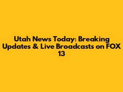 Utah News Today: Breaking Updates & Live Broadcasts On FOX 13