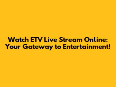 Watch ETV Live Stream Online: Your Gateway to Entertainment!