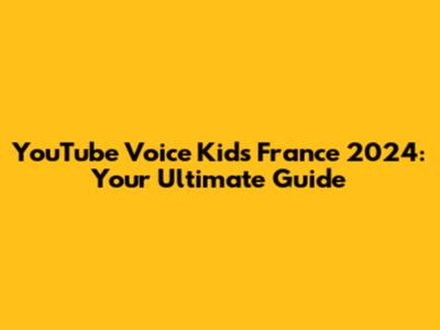 YouTube Voice Kids France 2024: Everything You Need To Know